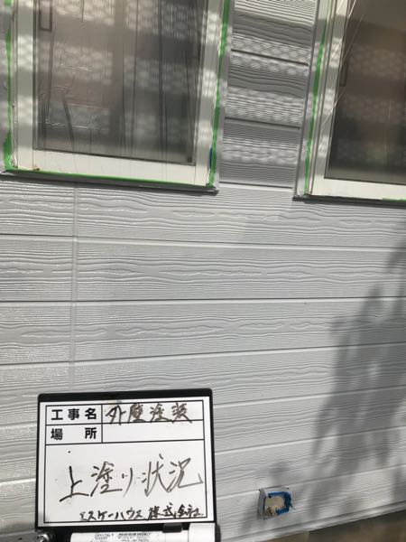 右部分は上塗りを終えた外壁です。