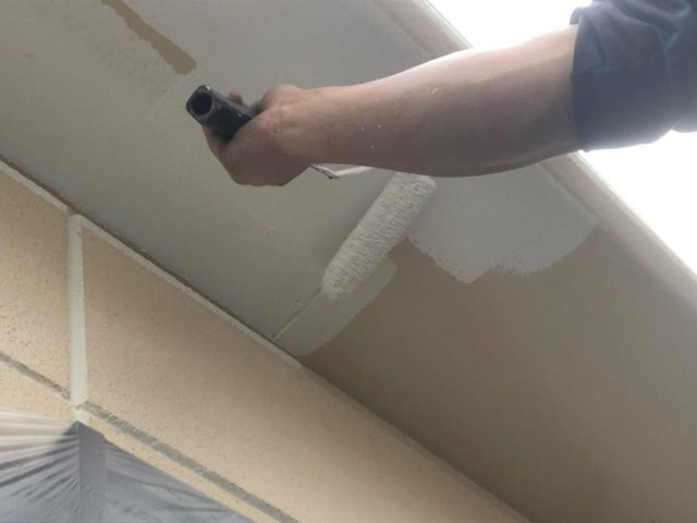 ※軒天を塗装している様子